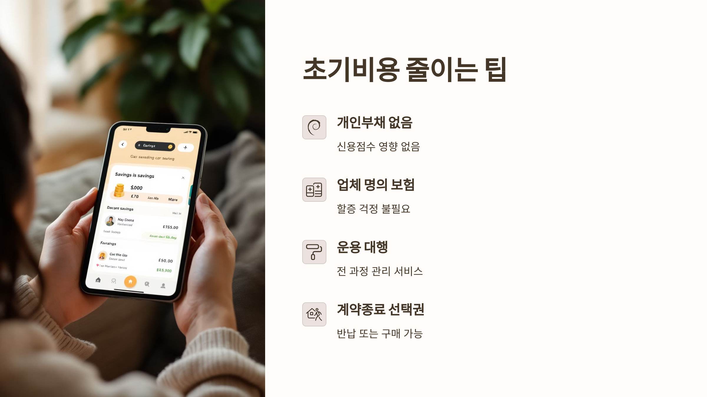 하지만 ‘초기비용 0원’이라는 말만 믿고 섣불리 계약했다가 월 납입액이 생각보다 높아 낭패보는 경우도 있어요. 그래서 정확히 어떤 비용이 들어가는지, 어떤 조건이면 초기비용이 줄어드는지 잘 파악하는 게 중요해요.